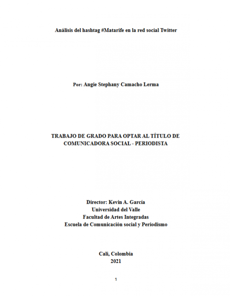 "Análisis del hashtag #Matarife en la red social Twitter" Realizado por: Angie Stephany Camacho Lerma