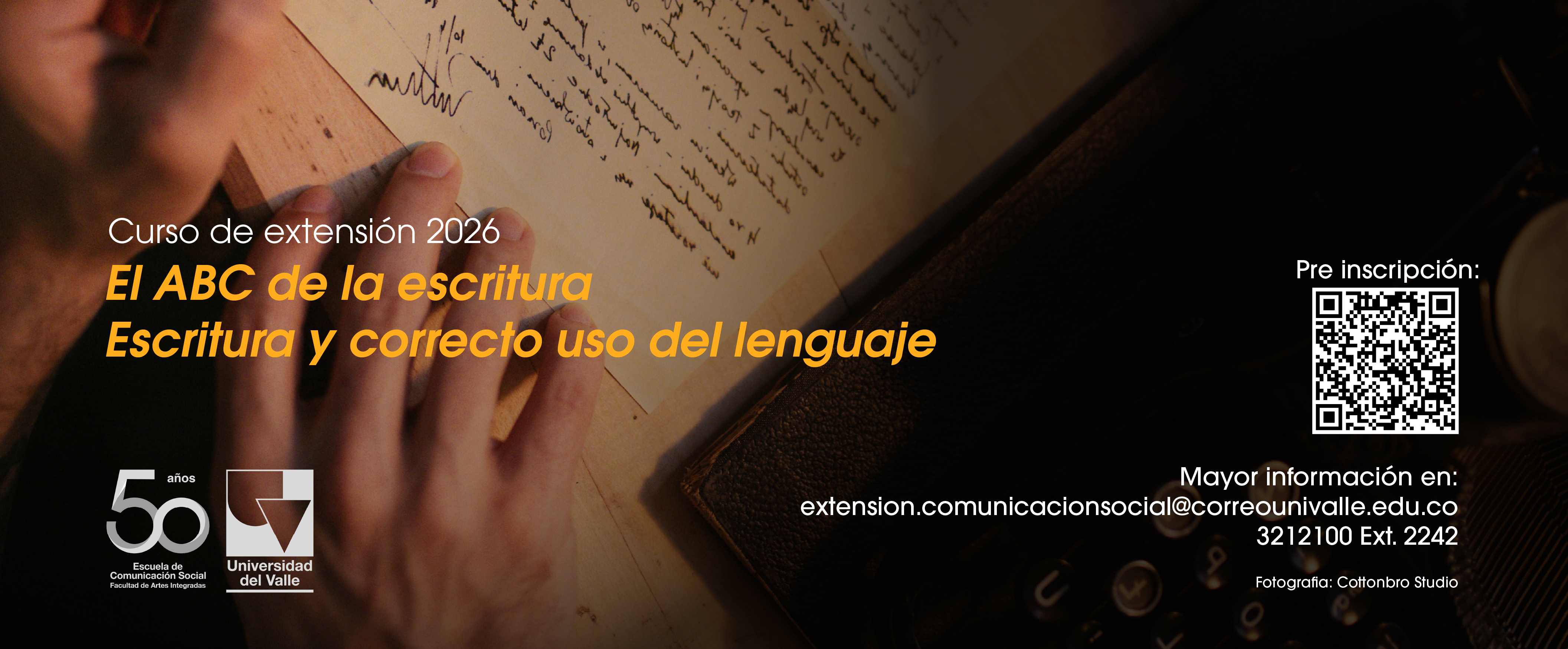 La Escuela de Comunicación Social de la Universidad del Valle reactiva su oferta de Educación Continua para este 2026. Bajo el respaldo de la Facultad de Artes Integradas, regresamos con programas que integran innovación, sensibilidad estética y compromiso social, reafirmando nuestro liderazgo en la región y nuestra misión de formar profesionales críticos al servicio de la vida.
