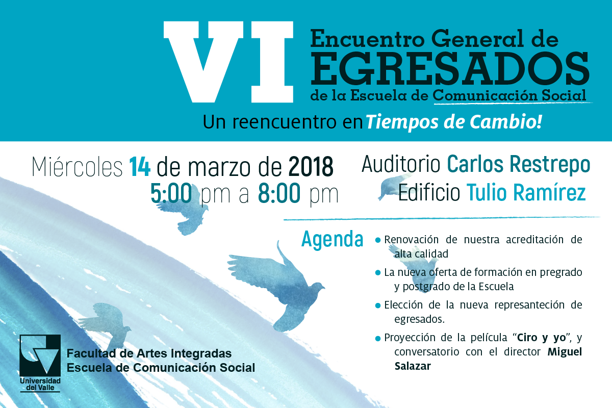 La Escuela de Comunicación Social invita a todos los interesados a participar en la reunión sobre la Renovación de Acreditación del Programa Académico - Resultados de Autoevaluación. Martes 13 de marzo de 2018. 10 a 12 M. Auditorio Ángel Zapata, Biblioteca Mario Carvajal, Universidad del Valle.