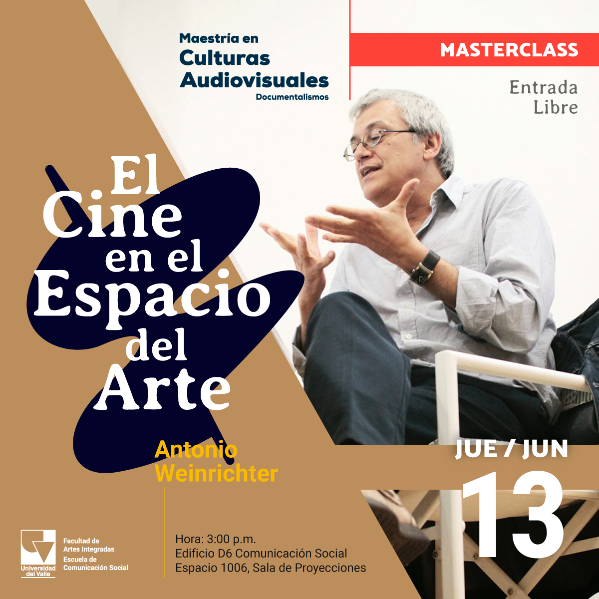 El Jueves 13 de Junio, desde la Maestría en Culturas Audiovisuales, Antonio Weinrichter dará su MasterClass "El Cine en el Espacio del Arte" a las 3:00 p.m. en la Sala de Proyecciones del Edificio D6. La Entrada es Libre.